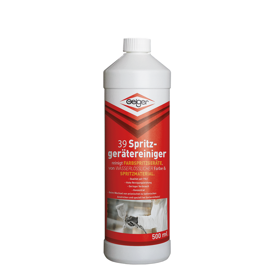 Der Geiger 39 Spritzgerätereiniger ist ein leistungsstarker Reiniger für die gründliche Reinigung von Farbspritzgeräten, die mit wasserlöslichen Farben, Lacken, Spritzmaterialien und Isoliermitteln eingesetzt werden.