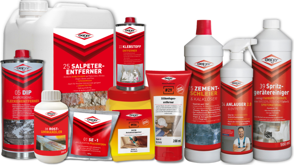 Die Geiger Anlauger & Reiniger sind individuelle und gut durchdachte Lösungen. Jedes Produkt hat eine individuelle Rezeptur, die exakt für den jeweiligen Verwendungszweck entwickelt wurde. Eines haben jedoch alle Produkte des Sortiments gemeinsam: sie wirken schnell, gründlich und sind enorm ergiebig. Mehr noch, Produkte der Geiger Chemie GmbH sind biologisch abbaubar und erfüllen höchste ökologische Standards. Und hinter all dem steht bis heute der Leitsatz mit dem einst Walter Geiger das Unternehmen 1961 gründete: «Schönes kann nur dann entstehen, wenn die Chemie stimmt.»
